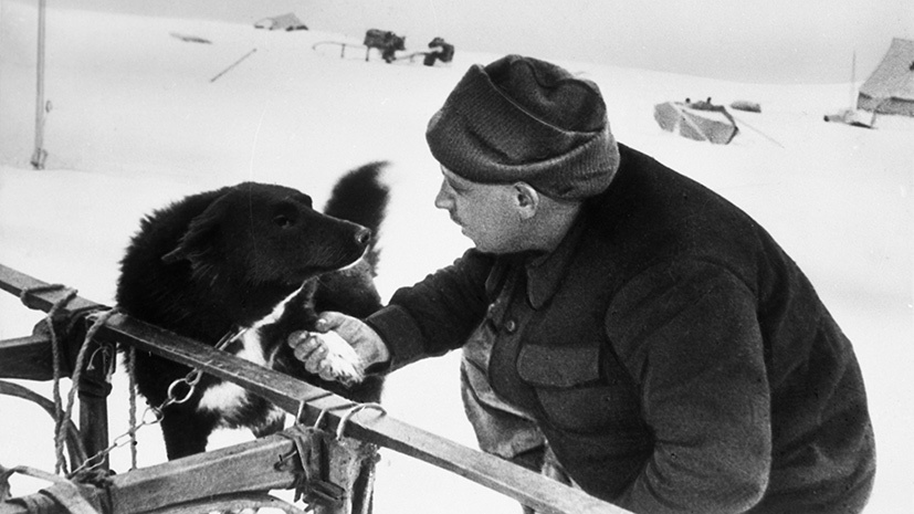 - Первая советская полярная научно-исследовательская дрейфующая станция «Северный полюс — 1». 21 мая 1937 года — 19 февраля 1938 года. Руководитель станции Иван Дмитриевич Папанин с псом Весёлым