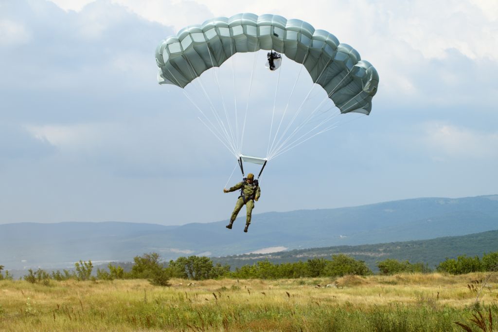 Для использования в военных целях, чтобы достичь труднодоступных мест с помощью парашютного прыжка, парашютисты и спецназ по-прежнему используют автоматические прыжки с небольшой высоты с парашютами с круглой крышкой . Начиная с 1980-х годов, чаще всего с плоскими парашютами через прыжки HAHO при планировании используют с большой высоты. В последнее время его также заставили выпустить, так что нет необходимости в сложной тренировке свободного падения. Некоторые специальные полицейские подразделения (в Германии только GSG 9 Федеральной полиции ) используют прыжок с парашютом для воздушного транспорта в тактических целях.