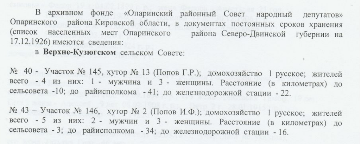 Сведения из переписи 1926 года по сельской местности Северо-Двинская губерния, Опаринский район, Верхне-Кузюгский сельсовет