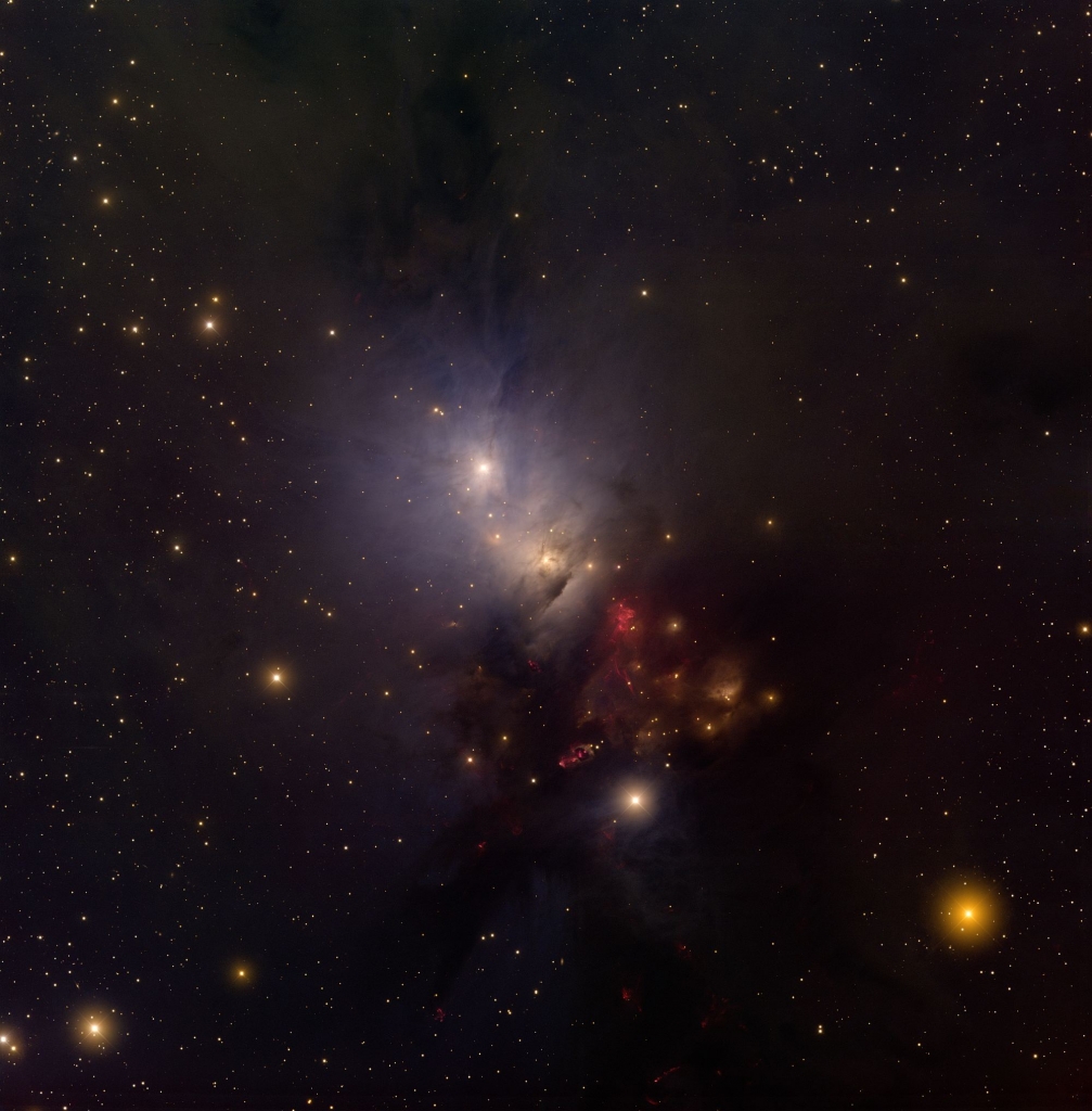 Эта туманность расположена в 1000 световых годах от нас и имеет голубоватый оттенок. Она не светится сама по себе, а отражает свет других звёзд, так как содержит как газ, так и пыль. В этой туманности активно образовываются новые звёзды, которые и подсвечивают туманность изнутри. Свет самих звёзд, расположенных внутри туманности, затеняется плотными пылевыми облаками.