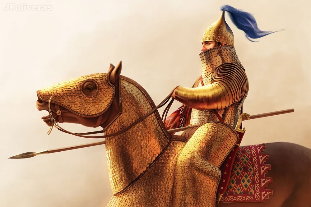 Прорисовка настенного изображения персидского катафракта, III век н. э. (Nicolle, D. Sasanian armies)