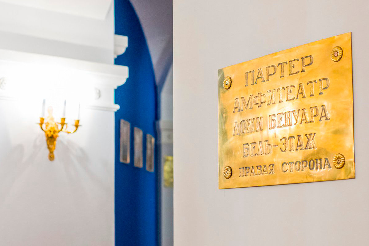 Помещение музея «Театральный разъезд», подобно самому пространству театра, разделено на сцену и зрительный зал.