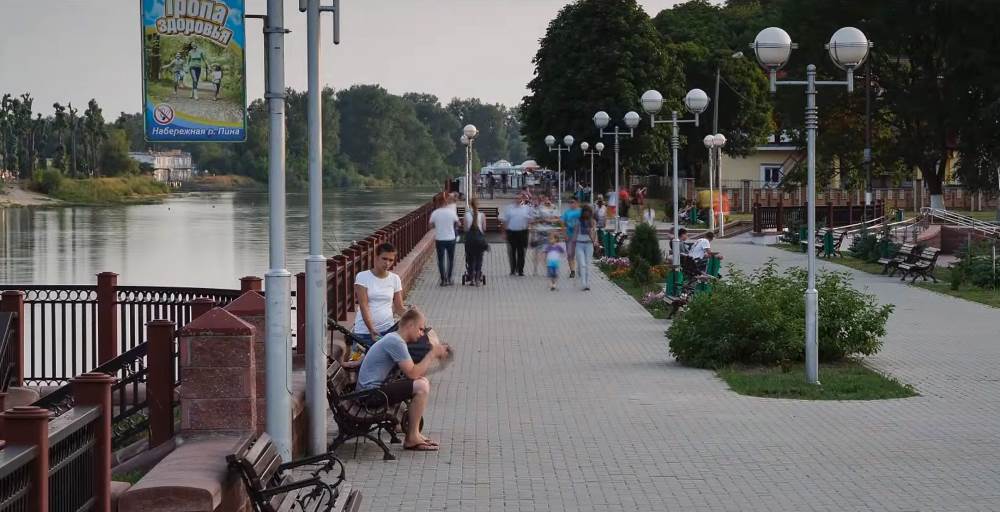 История Пинска всегда была тесно связана с водой. Как и в России, в Полесье строили города возле рек. Пинск располагается на пересечении двух рек: Пины и Припяти. Конечно, вдоль воды находится одна из самых популярных у местных жителей и туристов прогулочных зон — набережная. Ранее она была не более 100 м, но в 2008 году её благоустроили и продлили до 300 м.