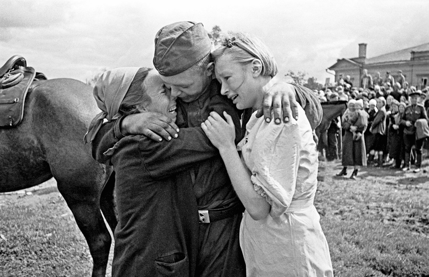 Красноармеец Широбоков встретил своих сестер, спасшихся от смерти. Их отца и мать расстреляли немцы