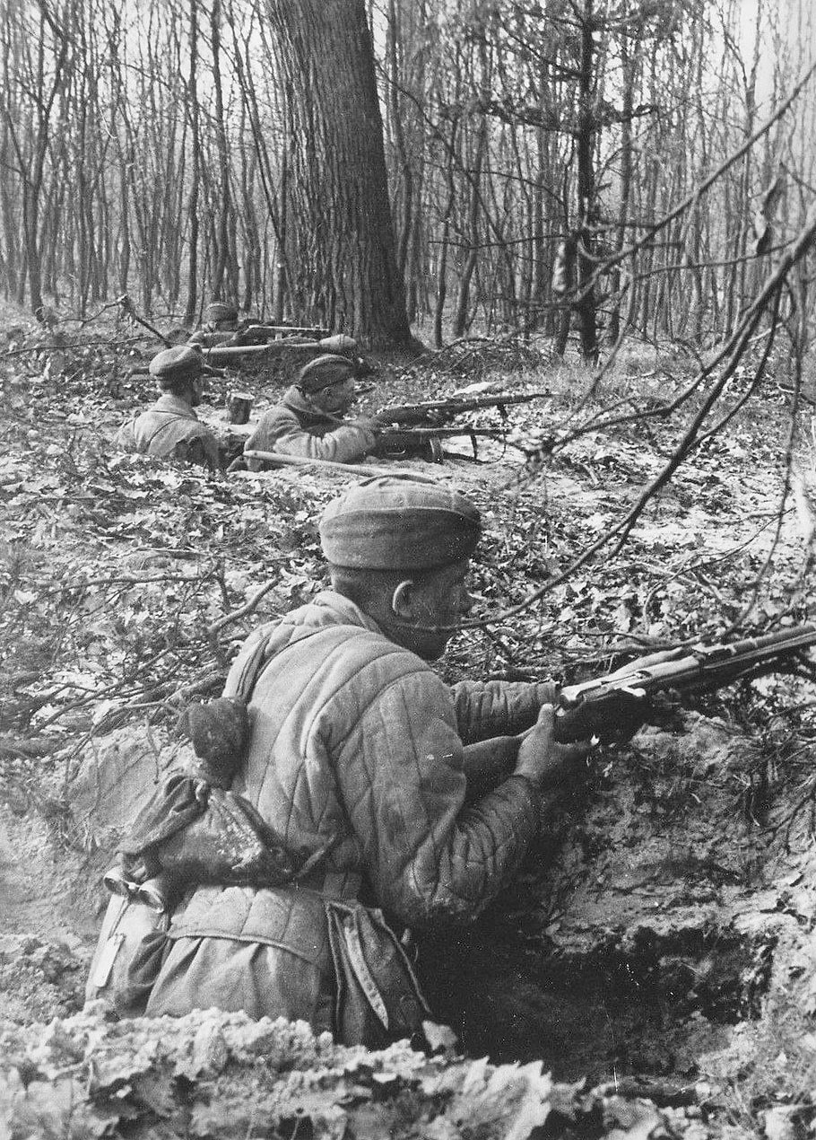 Комбат ведёт в атаку своих солдат, Украина, 1942 г.