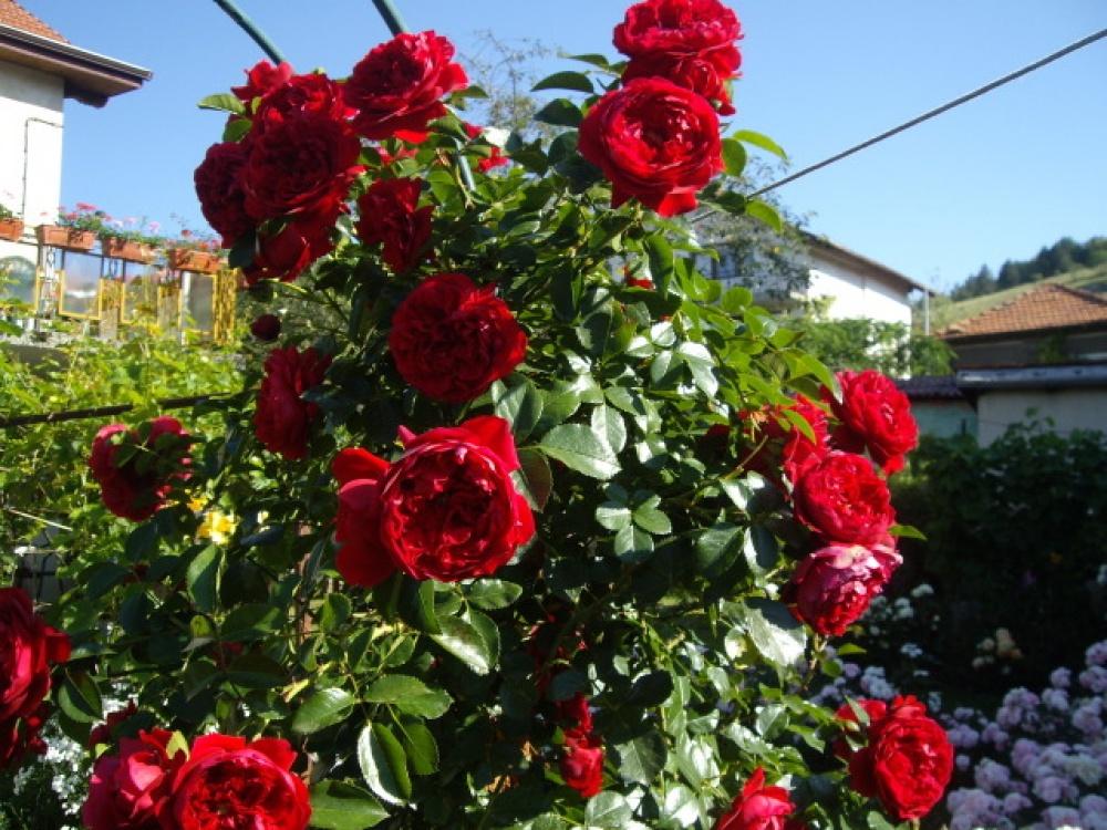 «Ред Бланкет». Этот сорт является потомком знаменитого «Естердей» и оправдывает свое название «Красное одеяло». Цветки крупные, полумахровые, светло-красные, в крупных соцветиях, с легким ароматом. Куст высотой до 70-80 см, побеги прочные, длиной до 1,2 м, не ложатся на землю. Куст в возрасте 3-4 лет укроет площадь до 3 м2 обильной нарядной листвой и прекрасными цветками. Исключительно декоративный сорт, неприхотлив, устойчив к возбудителям болезней, хорошо зимует под легким укрытием в условиях Подмосковья.