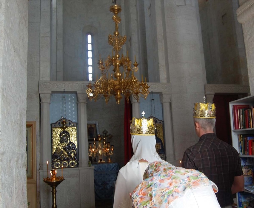 Есть у храма и свои архитектурные особенности: несмотря на то, что стены возведены строго вертикально, создается впечатление, что они немного наклонены внутрь. Особенно это заметно на фото, сделанных внутри церкви. Подобная иллюзия создается благодаря особым пропорциям и столпам, которые сужаются к верху.