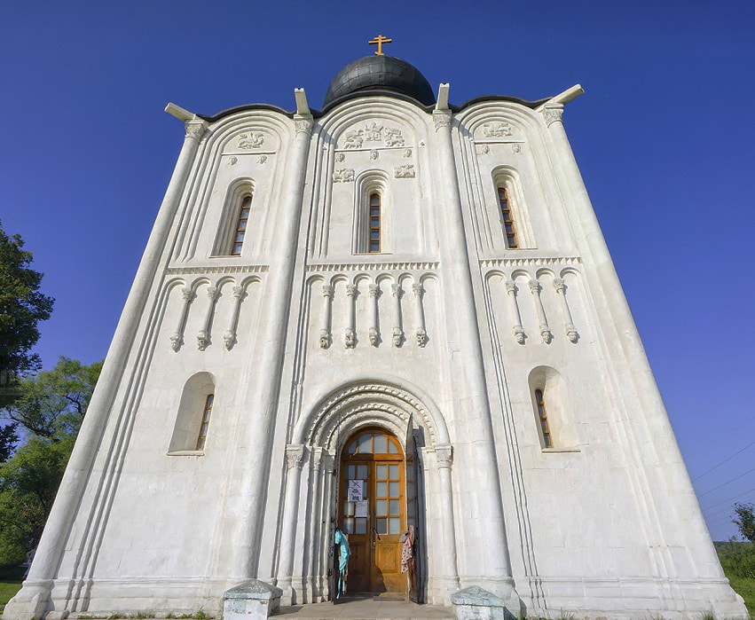 — это был так называемый парадный княжеский храм, который построен при входе в пределы Владимирского княжества водным путем по рекам Нерли и Клязьме.