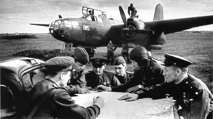 - Офицеры 366-го отдельного разведывательного авиационного полка разрабатывают план операции на лётном поле в станице Пашковская на Кубани. 1943