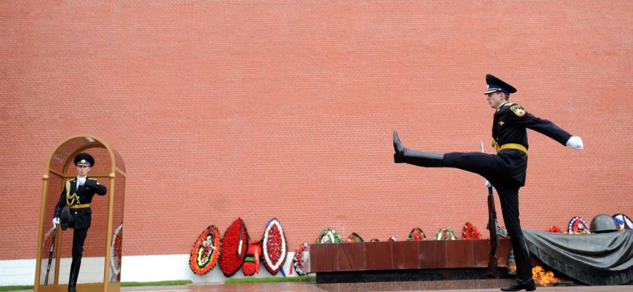 Караульная служба около Кремлевской стены организована безупречно. В 8:00 и в 20:00 происходит церемония: вышколенные часовые проходят 700 метров по Красной площади — от Спасской башни до Могилы Неизвестного солдата.