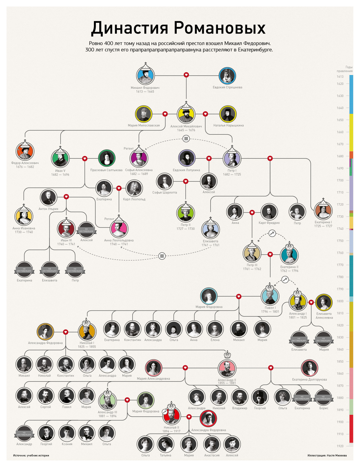 Первым представителем царственной династии стал Михаил, он провел на престоле время с 1613-го по 1645 год.