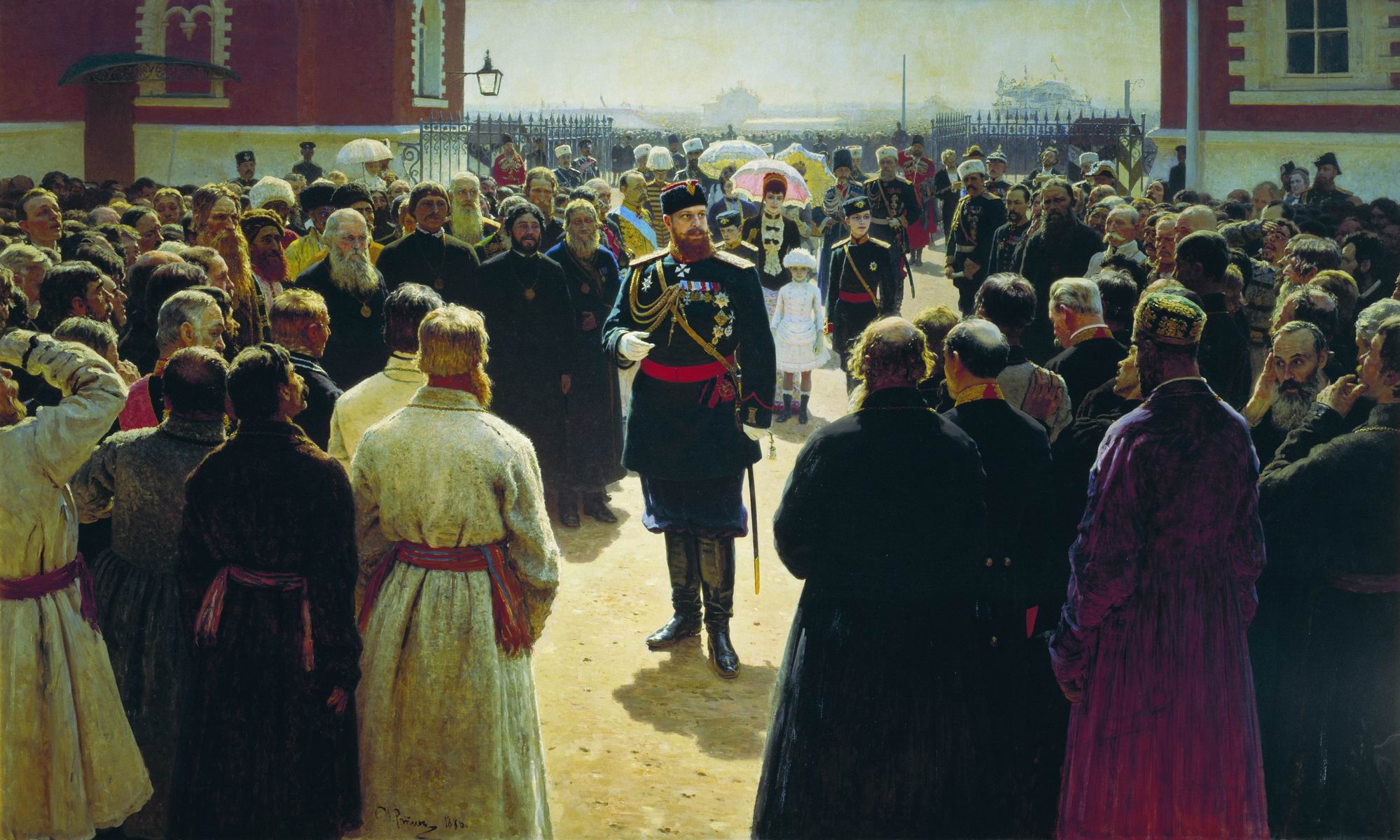 Картина Репина «Прием волостных старшин Александром III» (во дворе Петровского дворца в Москве)