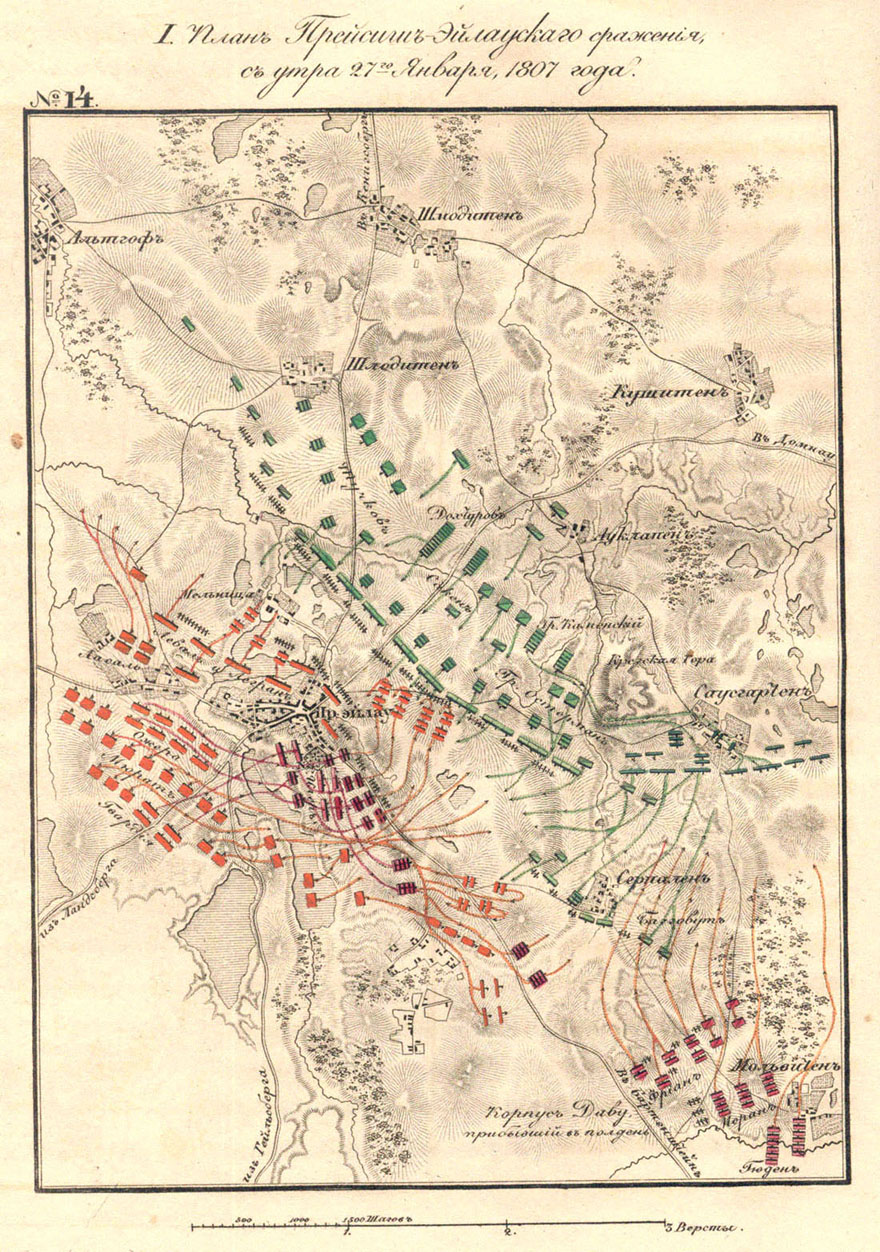 Сражение это явилось результатом активных операций, во вторую зимнюю кампанио 1807 г., нового главнокомандующего — генерала Беннигсена.