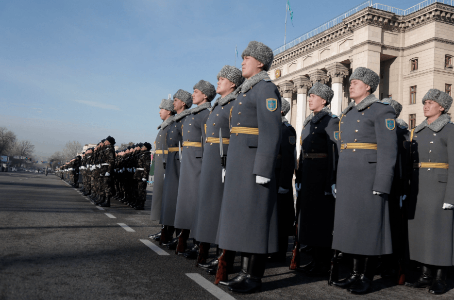 - В назначенную дату и время личный состав воинской части в парадной форме выстраивается в строю с Государственным флагом и Боевым знаменем части, в присутствии военного оркестра;