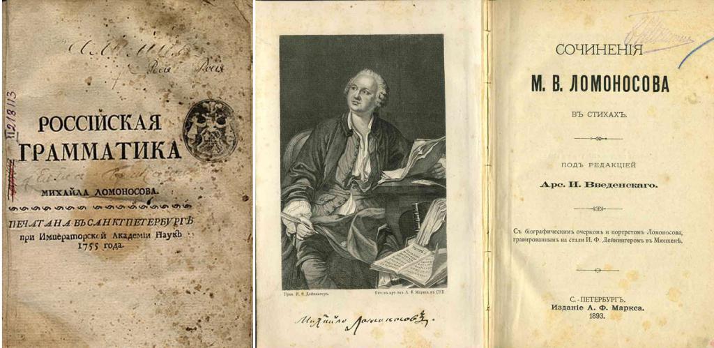 - Вторая половина XVIII века. Труды Михаила Ломоносова. В их числе первая «Российская грамматика».