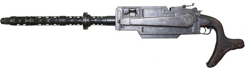 Пулемёт Максима-Колесникова имел хорошо узнаваемый из-за оригинального приклада внешний вид