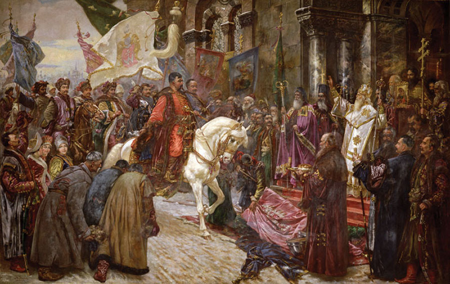 - «Въезд Богдана Хмельницкого в Киев», картина Николая Ивасюка, конец XIX века