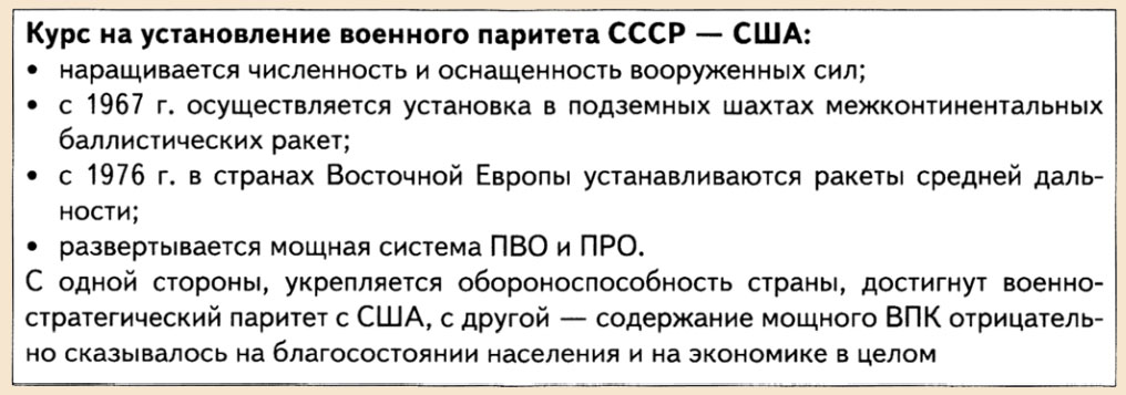В начале 1970-х годов в правлении Брежнева наступает период разрядки в отношениях в Западом, который характеризовался сокращением напряженности и стабилизацией отношений с западными странами, главным образом с США. В это время удалось договориться с США о сдерживании распространения ядерного оружия. Было подписано несколько важнейших договоров.