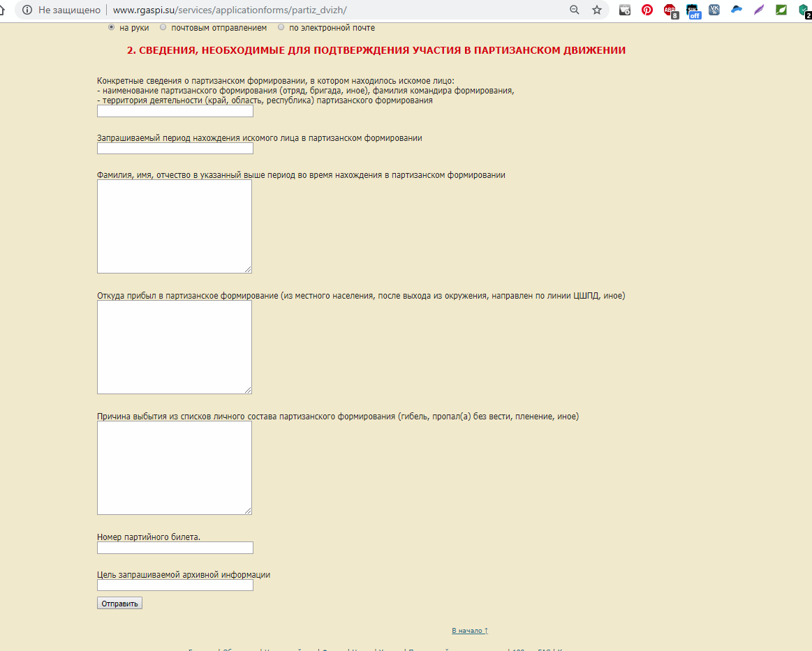 На сайте архива есть формы, которые можно заполнить.
