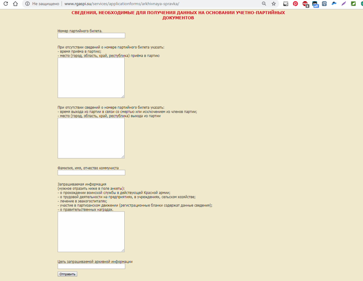 Направить запрос в РГАСПИ
