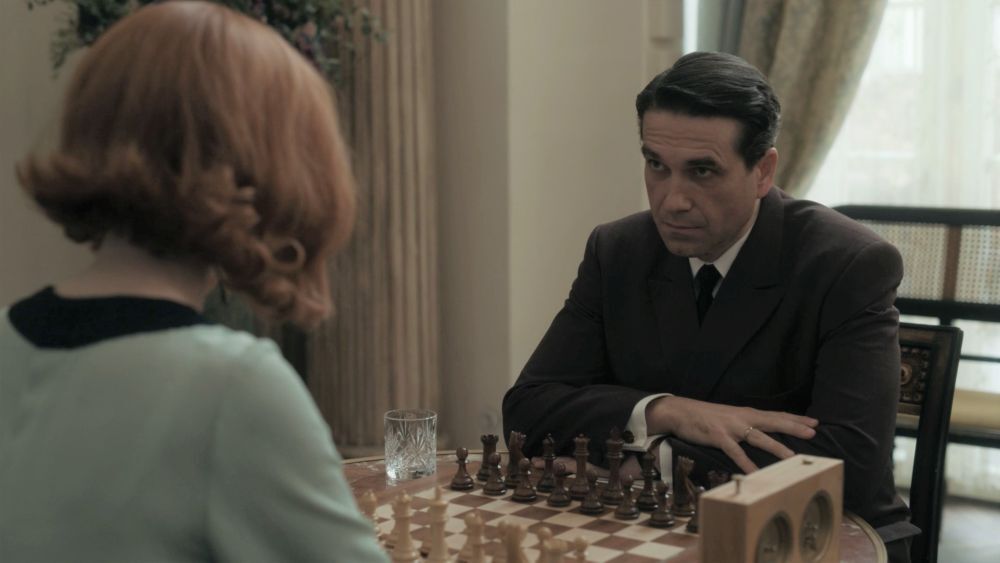 Создатели сериала вольно подошли к интерпретации биографии книжного Боргова. Персонажу книги Уолтера Тевиса тридцать восемь лет. Актер Марчин Дорочиньский, сыгравший Боргова в сериале, недавно отметил сорок седьмой день рождения. Грим и освещение на съемочной площадке добавили к этой цифре еще несколько лет — экранный чемпион мира старше пятидесяти.