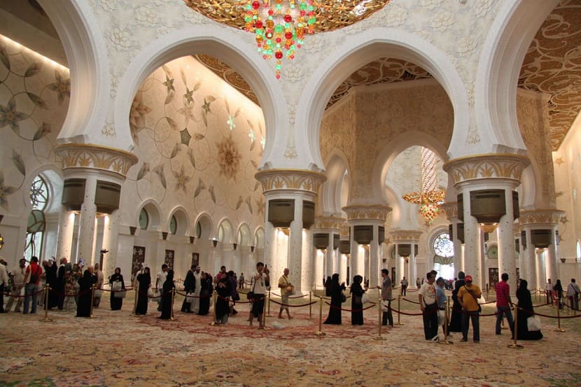Мечеть шейха Зайда. Находится она в Абу-Даби (ОАЭ) и является самой большой на этой территории. Названа она именем первого президента Эмиратов и основателя мечети. Один только внутренний двор занимает почти 17,5 тысяч м2. Весь он выложен мрамором впрочем, как и купола здания и внутренние стены. В мечети помещается 40 000 человек, а в главной молитвенной комнате — 7 000 человек;