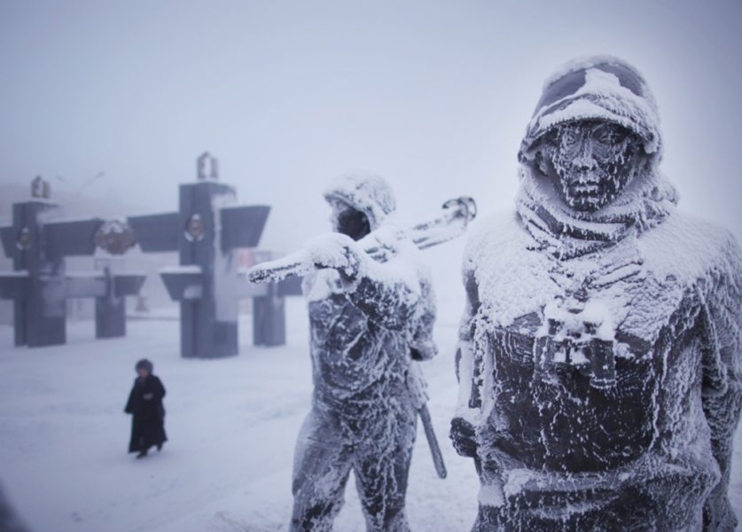 Лютые морозы каждую зиму одолевают и жителей села Оймякон (Якутия). В поселке живет 500 человек. По официальным данным, в 1916 году здесь стукнули небывалые морозы: ртутный столбик термометра в те дни опустился до -82°C. Это самая низкая температура, зафиксированная в России.