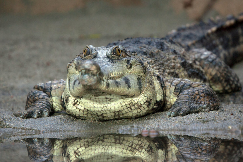 Считается самым маленьким крокодилом, взрослая особь не превышает в длину полутора метров.