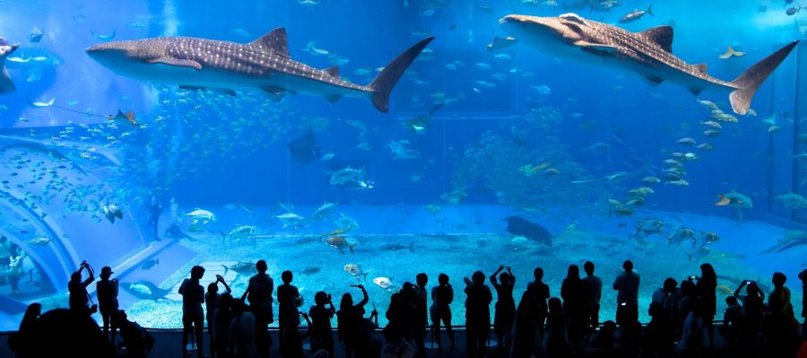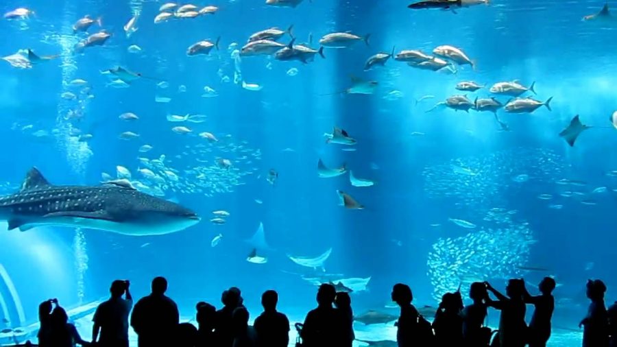 К The Okinawa Churaumi Aquarium относятся секции с рыбами, ламантинами, дельфиний, театр и аквариумы с редкими видами морских черепах.