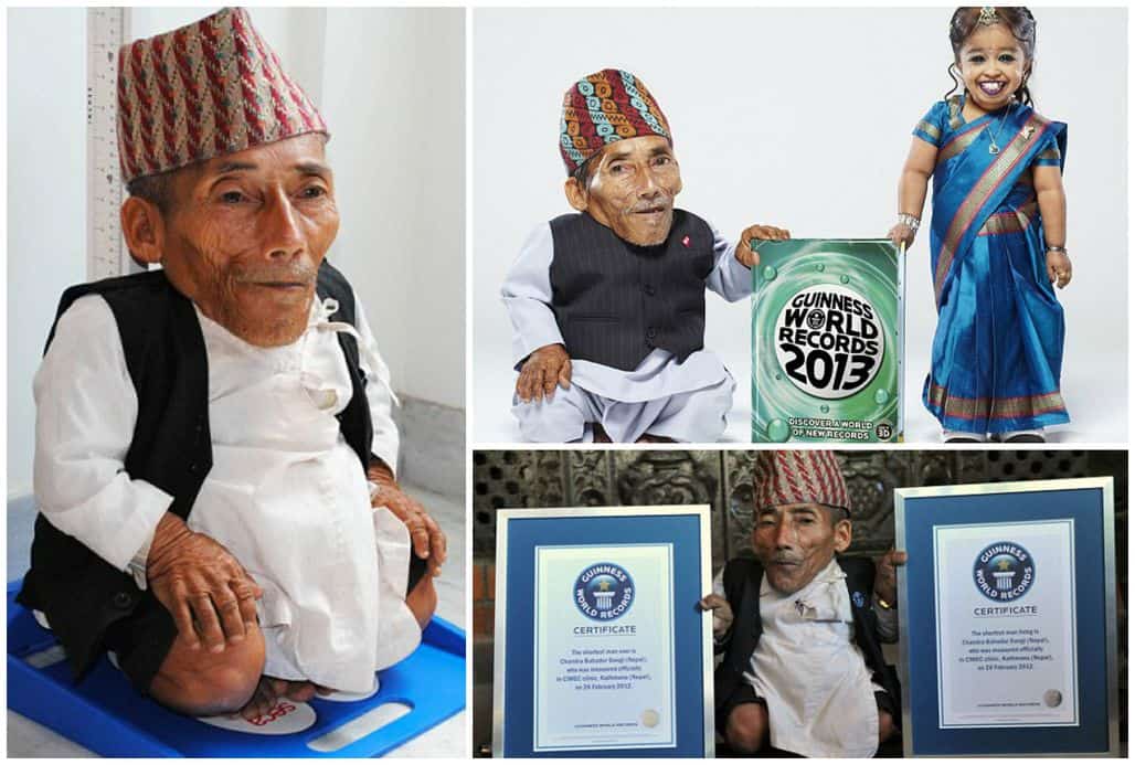 Рекордсмен родился в Непале, ни разу в жизни не был у врача и до 72 лет прожил в безвестности. Однако в 2012 году известие о нем попало в газеты, после чего представители книги рекордов официально зафиксировали его рост — 54,6 см.