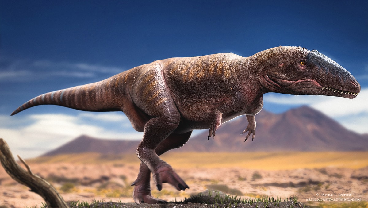 Карнотавр – один из немногих крупных видов, внешность и анатомию которых удалось достоверно установить по полному скелету. Ящер с 8-миметровым телом передвигался на мощных задних ногах, а передние конечности у него были максимально редуцированы – уменьшены до малофункциональных размеров. Это не самый крупный динозавр, у него не было огромных зубов, но это не делает его безобидным.