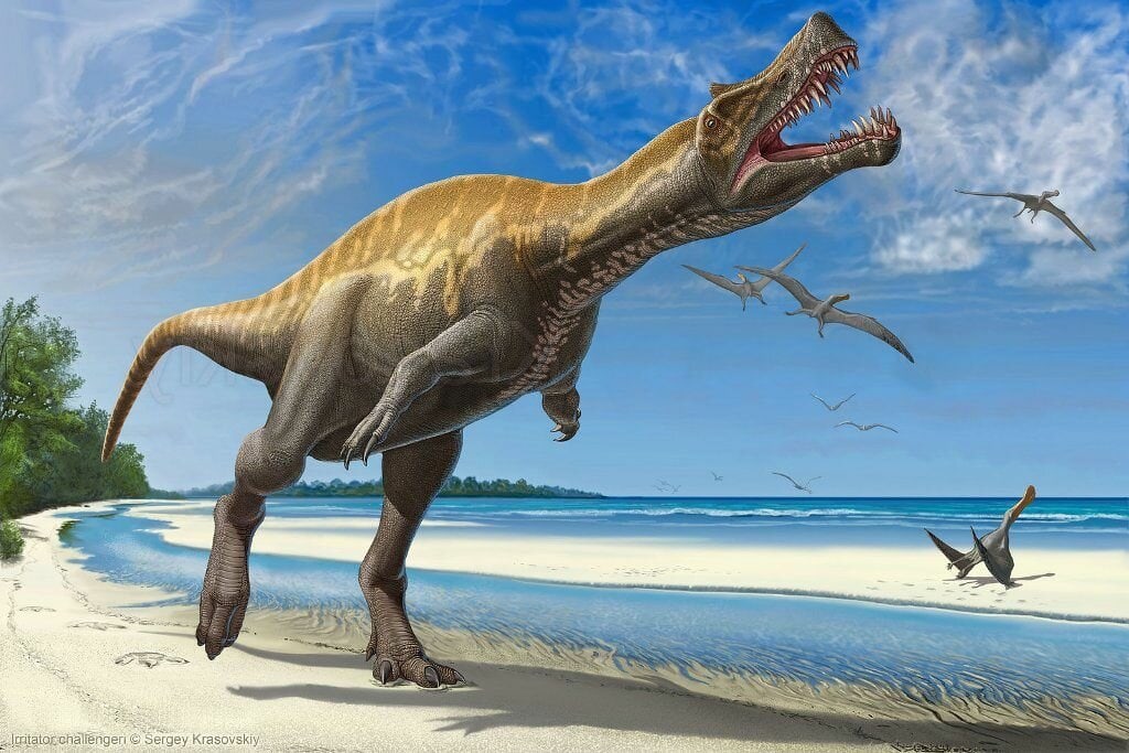 Хищный ирритатор обитал на территории современной Бразилии около 110 миллионов лет назад. Длина особи от носа до кончика хвоста – 7-8 м, рост в высоту – 2,5 м, что не позволяет отнести вид к самым крупным, но и совершенно не означает, что он был безобидным. По черепу ирритатора удалось установить, что челюсти были похожи на крокодильи. Это позволяло ему без особых сложностей доставать рыбу из воды – основную часть рациона, а также успешно лакомиться небольшими травоядными динозаврами. Монстр из мелового периода быстро передвигался на двух лапах, ловкость и проворность в полной мере компенсировали небольшие размеры.