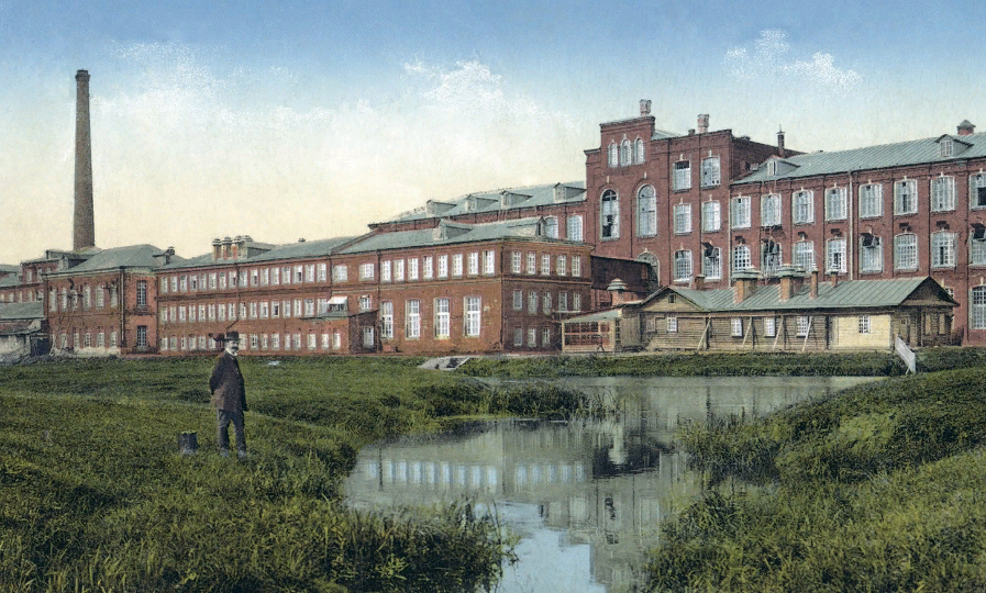 Главный корпус, так называемую Новоткацкую фабрику, возвели в 1907–1908 годы в соответствии с последними достижениями прогресса. Там, например, использовалось верхнее естественное освещение благодаря десяткам конических световых фонарей. Существовала и система центральной вентиляции, при этом свежий воздух подводился непосредственно к местам работ.