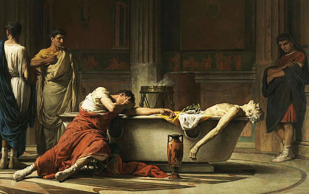 Нерон приказал Сенеке перерезать себе вены. Накануне смерти мудрец был абсолютно спокоен и невозмутим духом. Он единственный раз пришел в волнение, когда начал прощаться с женой.