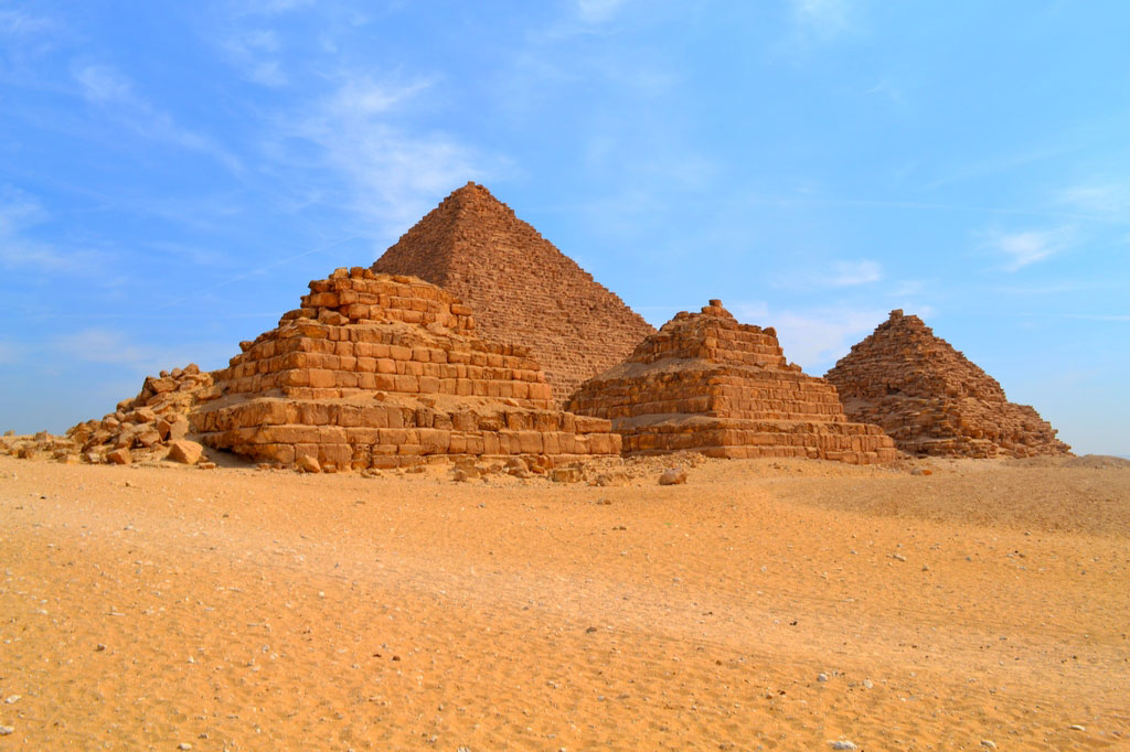 Расположенная на плавном склоне, переходящем в холмистую пустыню, самая маленькая из пирамид Гизы говорит об убывающем могуществе и преданности. Начатая преемником Хефрена Менкауром (которого греки называли Микерином), она была закончена с невиданной поспешностью его сыном Шепсескафом, который, видимо, обладал меньшей властью, чем его предшественники, и зависел от жрецов.