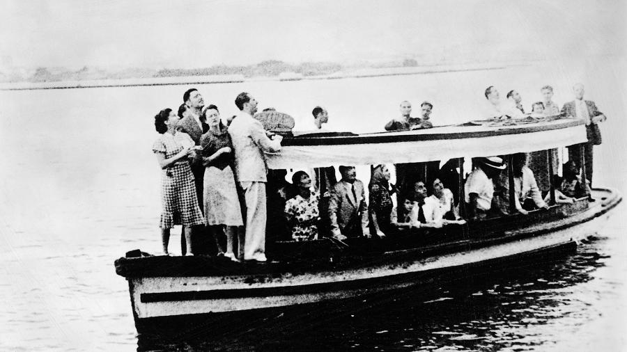 Еврейские беженцы на небольшом корабле пытаются попасть в США. Кубинское побережье близ Гаваны, 1939 год