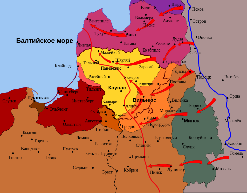 В июне-июле Красная армия отбила Киев, Бобруйск, Минск, Вильно и др. города.