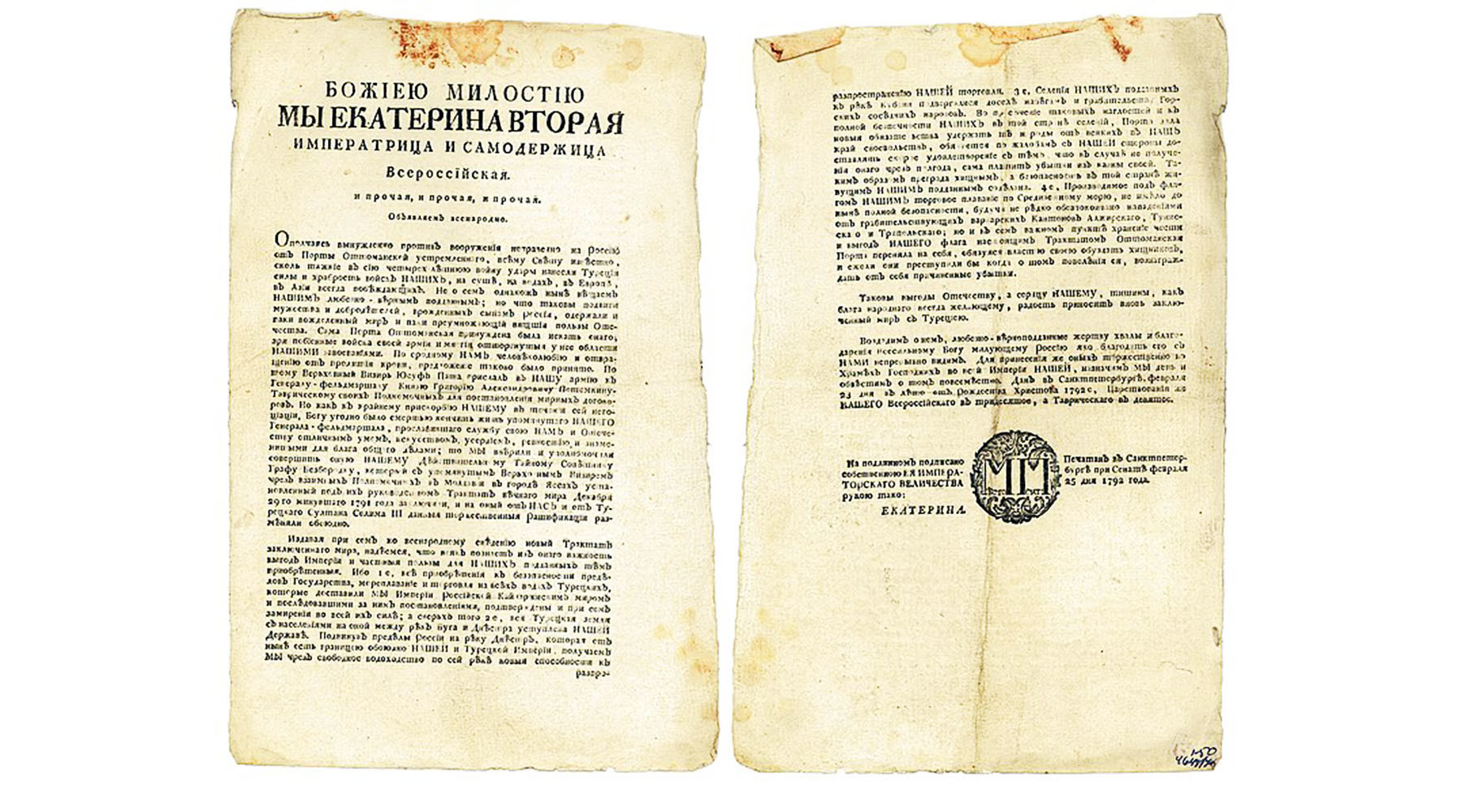 - Манифест о Ясском мирном договоре с Османской империей, 25 февраля 1792 года