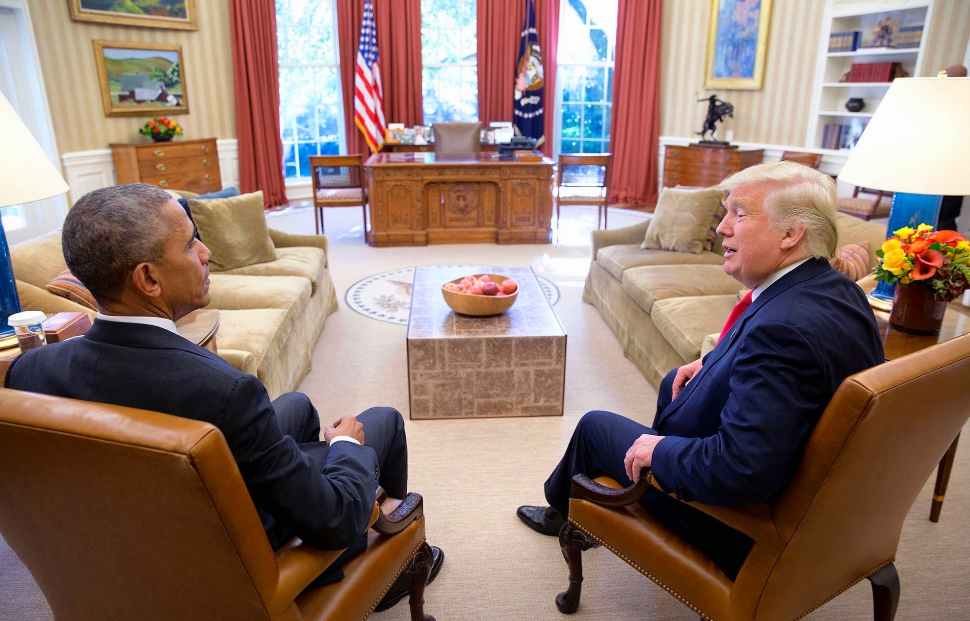 первым делом сменил коричневато-красные шторы, бывшие при Бараке Обаме, на золотистые, а гладкие диваны — на диваны,