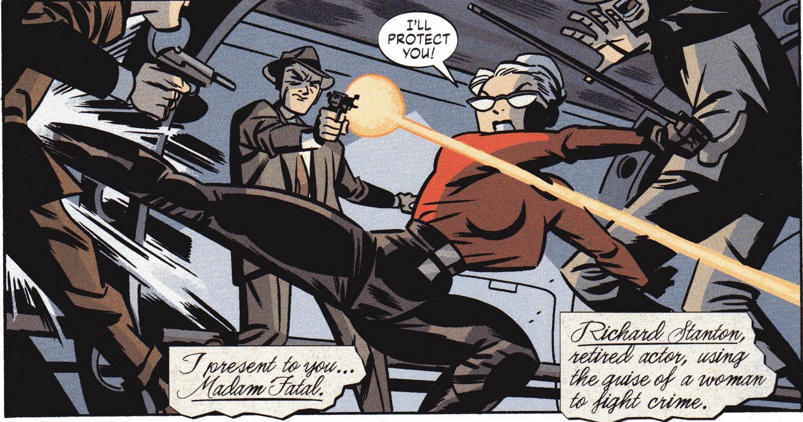 Ночью сгорбленная старушка Madam Fatal — гроза всех разбойников Нью-Йорка, а днем — обычный мужчина по имени Ричард Стэнтон. У него была работа, была семья, но все изменилось, когда неизвестный злодей похитил его дочь. Девять лет Ричард провел в поисках, пока не наткнулся за гнусного злопыхателя Джека Карвера. Вызывать полицию Ричард, конечно же, не стал. В голову пришла куда более удачная идея. Ричард был талантливым актером, поэтому подумал: «Что если, я переоденусь старушкой? Эти негодяй ни за что не догадаются, кто перед ними». К несчастью Ричарда, Джек раскрыл его планы, и им пришлось сражаться. Ричард убил Джека, но так и не узнал, где тот все это время держал его дочь. Поэтому он посвятил свою жизнь борьбе с преступностью.