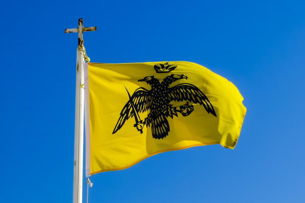 Золотой двуглавый орел – это частый представитель хищных птиц в геральдике. Он олицетворяет далекий взгляд правителей Византии, которые всегда здраво оценивали ситуацию и объединяли все народы, проживающие в империи. Примечательно, что, согласно легенде, орел на герб РФ «пришел» именно из Византии.