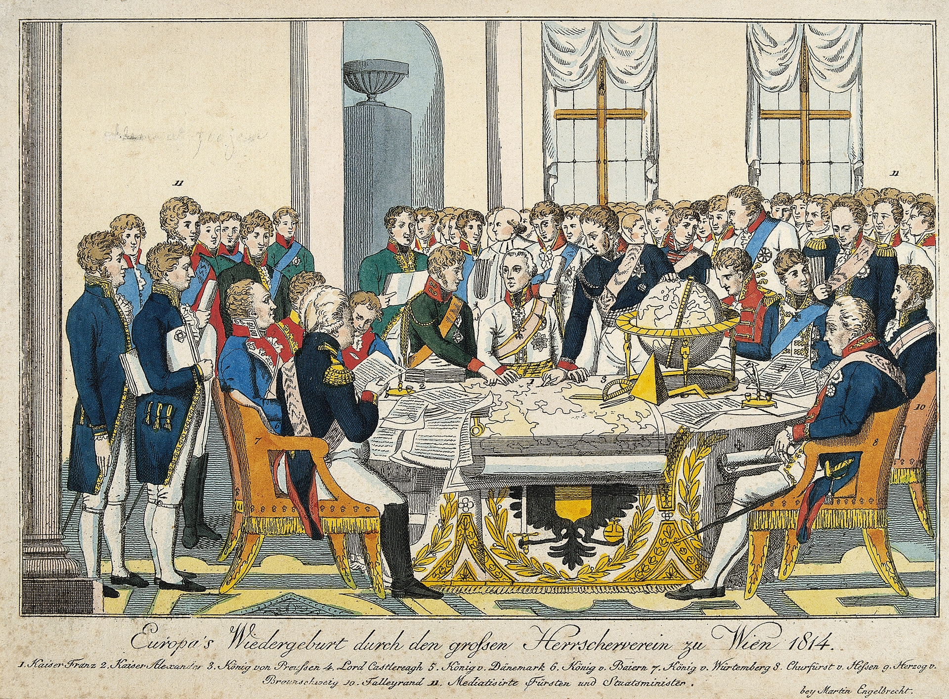 Новый миропорядок лидеры европейских государств обсуждали на Венском конгрессе, Генеральный акт которого был подписан 9 июня 1815 года. Англия, как и планировала, закрепила за собой новые колонии, Франция лишилась завоёванных Наполеоном земель, Австрия расширилась за счёт территорий на Апеннинском полуострове, а Пруссия — за счёт соседних германских государств. России отошла часть герцогства Варшавского. Также участники конгресса запретили работорговлю и приняли единое положение о дипломатических агентах.