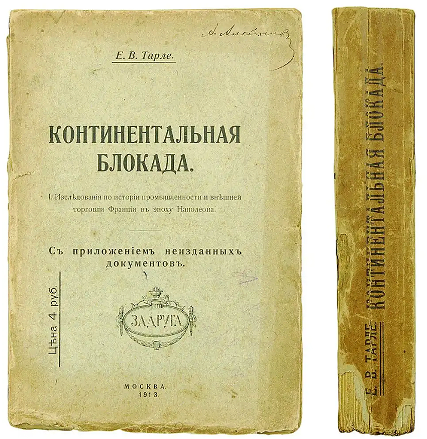 В 1913 году вышло фундаментальное исследование Тарле «Континентальная блокада», посвященное экономической истории Франции наполеоновской эпохи. Выход в свет этого исследования утвердил его репутацию одного из крупных русских экономических историков. В 1928 году вторая книга Тарле о континентальной блокаде вышла во Франции и имела хорошую прессу.