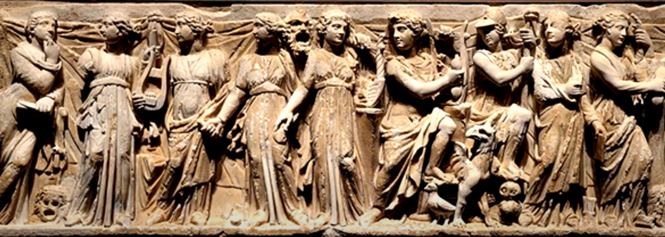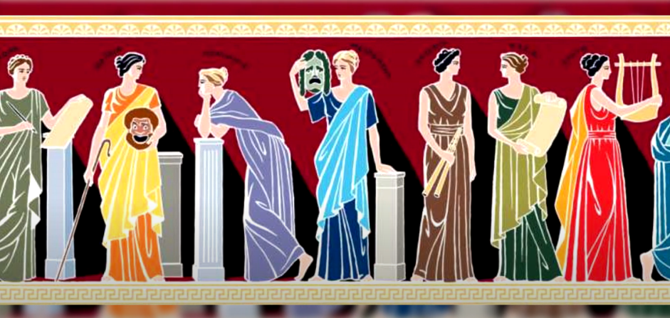 Музы сопровождали лучезарного Апполона, пели песни и водили хороводы, а также являлись покровительницами разных сфер и искусств, им предписывали дар ясновидения. Считалось, что музы проживают на священной горе Парнас. Муза переводится с греческого – мыслящая. Люди поклонялись музам в храмах, выстроенных для них — мусейонах, отсюда и название музея. Слово «музыка» также является производным от музы, в Греции термином назывались не только искусства, но и науки. Всегда юные музы древней Греции, имена их отражали области, которым они покровительствовали.