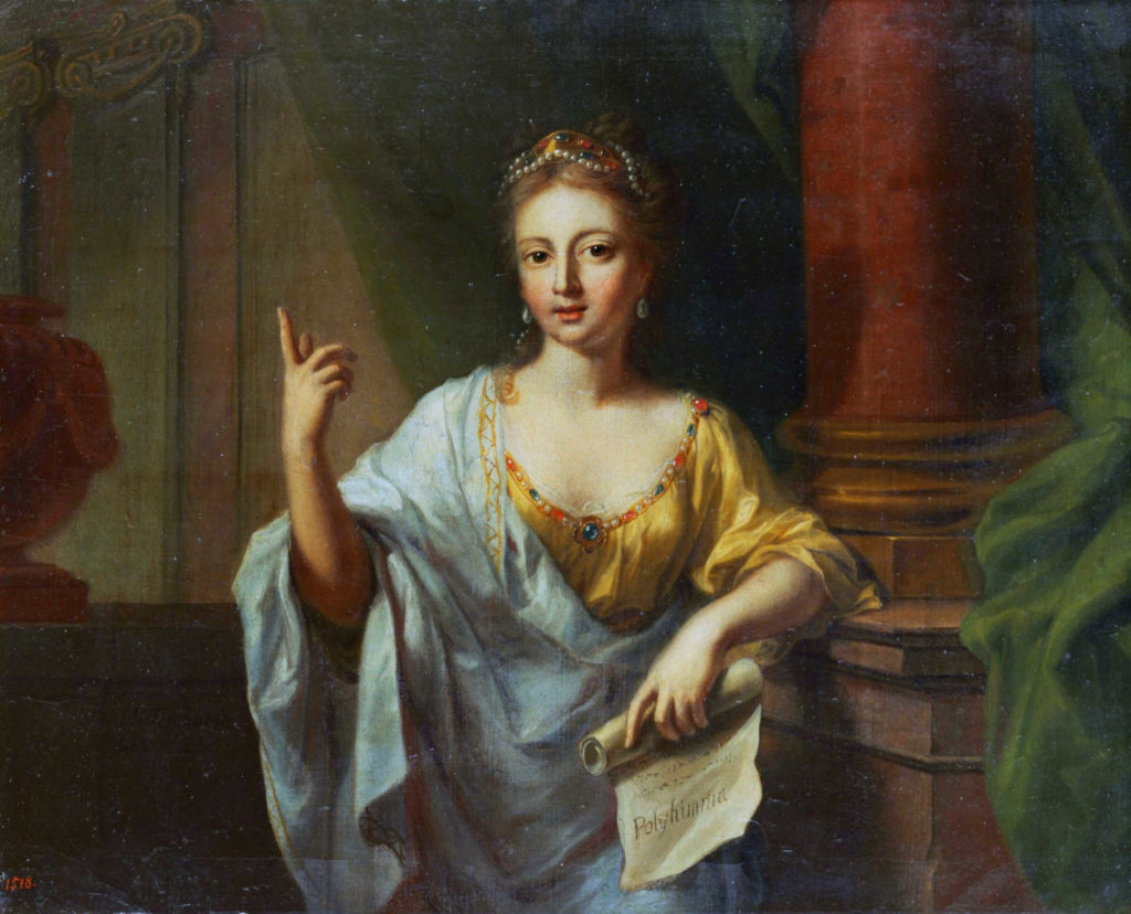 Полигимния – сочинительница и покровительница гимнов. В мусейонах дары к ногам Полигимнии складывали ораторы. Она придает тексту оратора пламенность и складность.