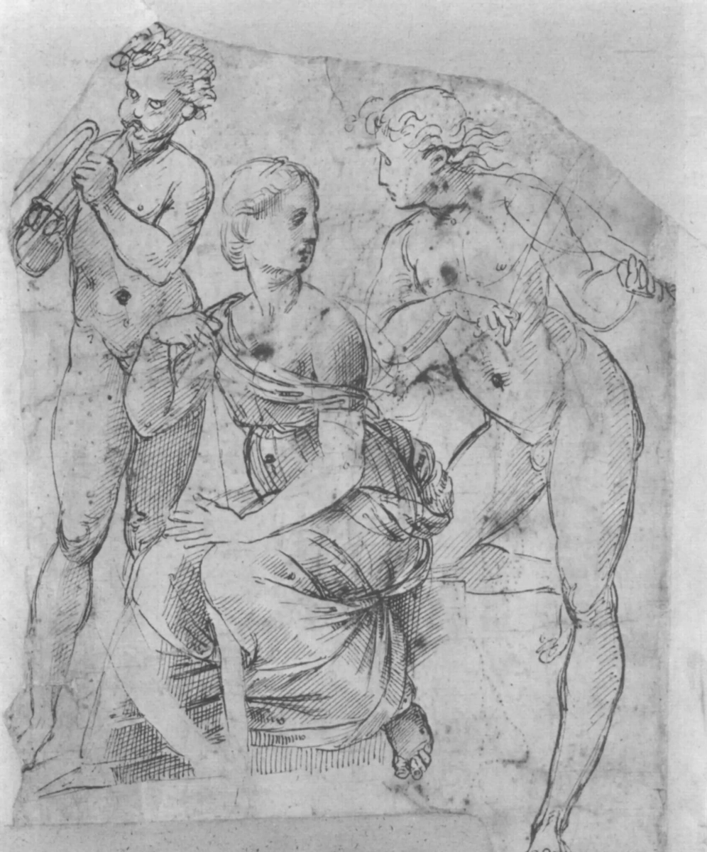 Этюд: Музыканты. Муза с Бахусом и Аполлоном. Рафаэль Санти. 1507. Музей Эшмола, Оксфорд, Великобритания