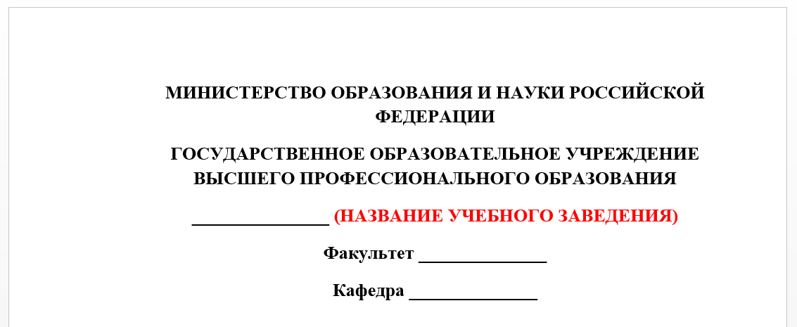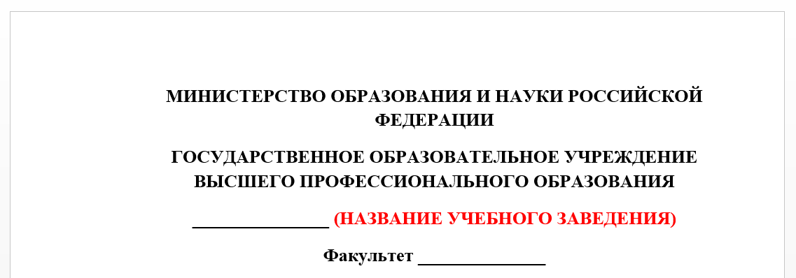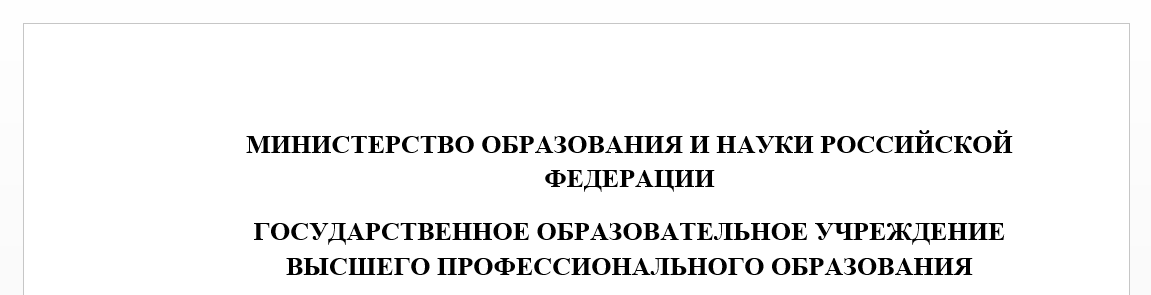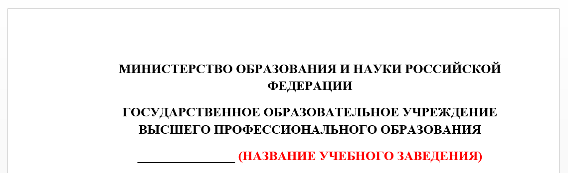 - В самом верху страницы посередине должны находиться сведения о ВУЗе, а именно: полное его название.