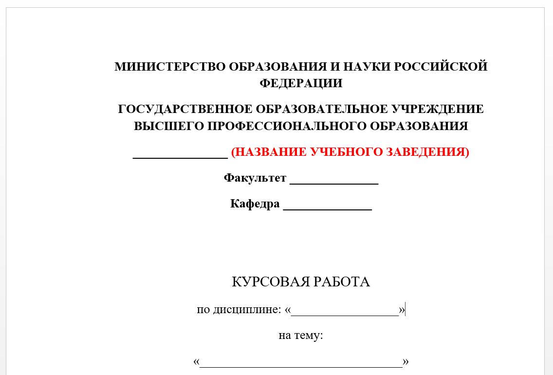 Как правильно оформить титульный лист курсовой работы по ГОСТу