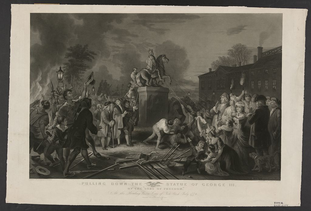 Низвержение статуи Георга III, Нью-Йорк, июль, 1776 г. (hdl.loc.gov)