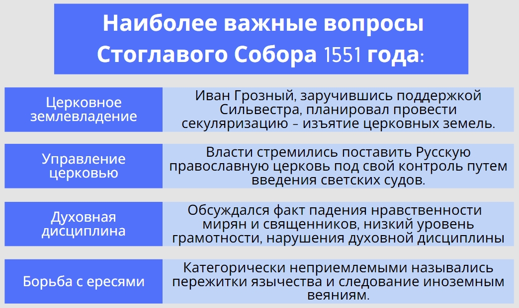 Наиболее важные вопросы, рассматриваемые на Соборе 1551: